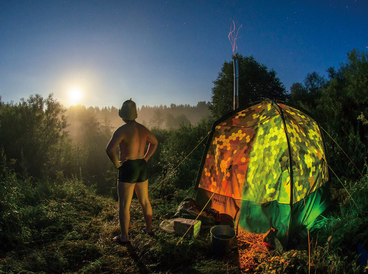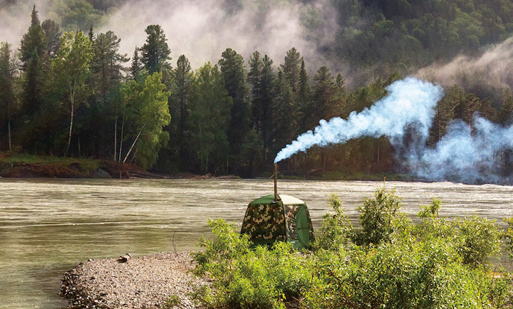 コンパクトながら熱を効率良く交換する仕組みを備えたストーブで薪を燃やし、ストーブ内にあるウォータータンクの水を沸騰させることで発生したスチームでサウナ浴を楽しめます。