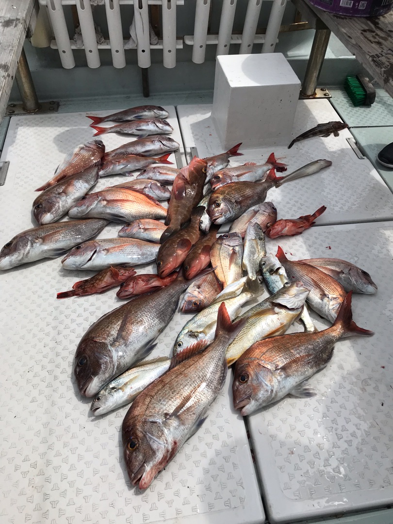 あっ、この前の月曜日にまたまた岡山の下津井にタイ釣りに行って来ました❗️今回はエースの安田君とマネージャーの坂元君と滋賀の美容師の竹内君の4人でしたが、全員安打で大量でした🎣