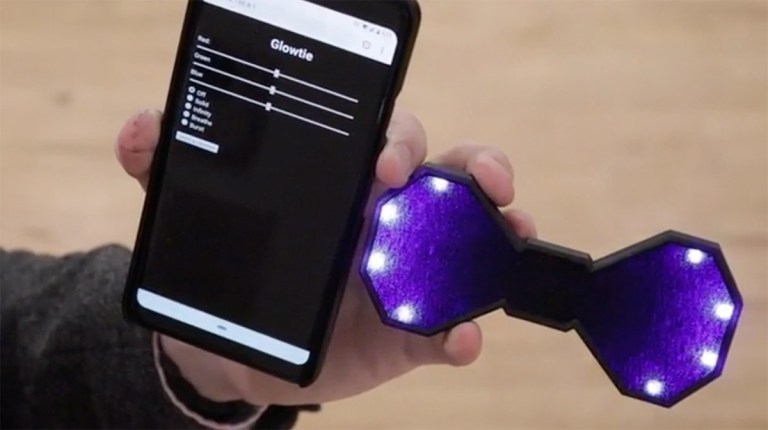 手持ちのスマホとWi-Fiで接続するだけで、アプリから色や発光パターンを様々に設定可能な「Glowtie」。